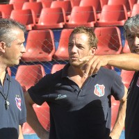 Julio Acuña y su cuerpo técnico ordenando el trabajo en el Parque Palermo.