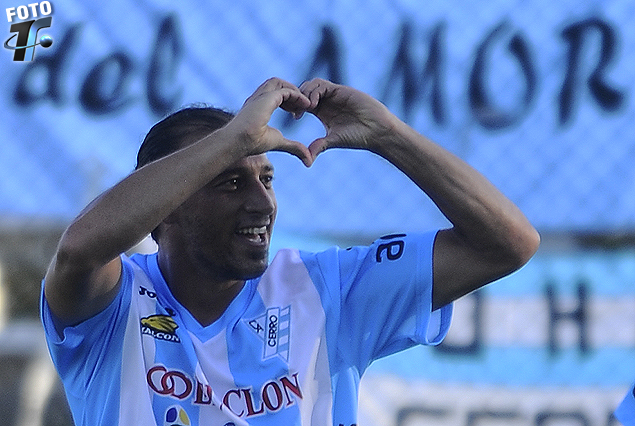 Richard Porta en el festejo del gol de Cerro, de penal.