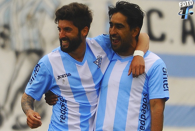 Pablo Caballero y Maureen Franco, los dos goleadores del partido en pleno festejo.