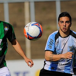 El verdinegro Joaquín Aguirre en el cruce al albiceleste Matías Abisab.