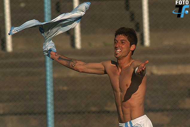 Pablo Caballero festejó con dos goles en el Estadio Luis Tróccoli el 10 de octubre de 2010.