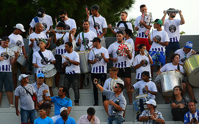 Los hinchas arachanes a toda batucada en el Estadio Burgueño de Maldonado.