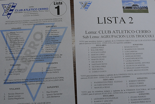 Las elecciones de Cerro se realizan en la sede de la institución, en la calle Grecia 3580. Los socios votan desde las 12:00 hasta las 20:00. Hay dos opciones. La lista N°1 postula a Miguel Panosian. Lema: Club Atlético Cerro, Sub Lema: “Agrupación Nelson “Pocho” Abal y Luis Refresquini, Comisión del Estadio. Presenta a los once integrantes: 1) Miguel Panosian, 2) Mario Bassi (vicepresidencia), 3) Gabriel Skliro, 4) Dagoberto Freire, 5) Fernando Almeida, 6) Fernando Cartelle, 7) Miguel Panosian, 8) Marcelo Olita, 9) Marcelo Bentancur, 10) Héctor Martínez, 11) Ricardo Ardaltz.
