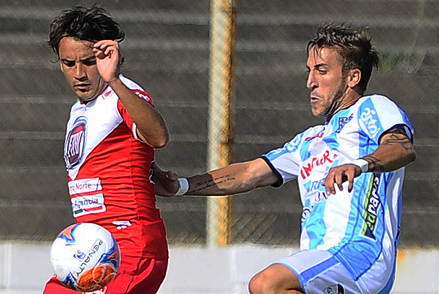 Nicolás Fagúndez con el balón, Andrés Ravecca llega a su marca.