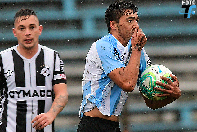 Nicolás González, el beso de gol y pelota en mano. Cerro en punta.