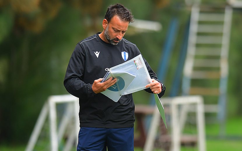 Sergio Blanco, carpeta en mano analiza los rendimientos de sus nuevos dirigidos en cancha del Complejo La Chacra. Asumió la dirección técnica de Juventud.