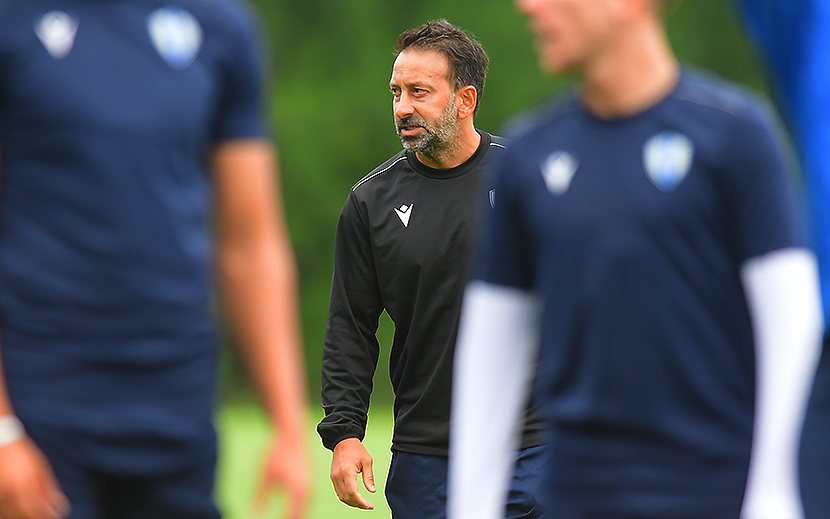 Y de las palabras a los hechos, para dirigir el entrenamiento que consistió en tareas en espacios reducidos y principalmente en ensayos tácticos preparando el partido debut en fase grupos de Copa Sudamericana.