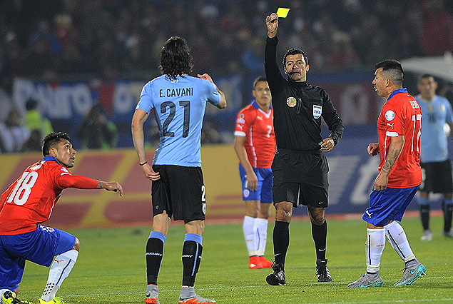 Gonzalo Jara y la agresión a Edinson Cavani. El chileno le introdujo un dedo en el ano, el uruguayo reaccionó le “acarició” la cara y fue expulsado por el árbitro brasileño Ricci.