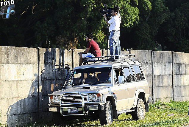 -LA PRENSA BOLIVIANA: Por supuesto que entre los automóviles, se encontraban varios de los medios de comunicación de Santa Cruz de la Sierra. Sus hombres de las cámaras no sólo trabajaron desde los vehículos, sino que también descendieron y se subieron a diversos montículos de tierra, linderos al murete, desde donde registraron el entrenamiento del equipo uruguayo.
