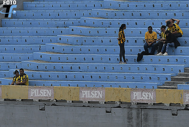 Los hinchas de Peñarol comienzan a poblar las tribunas. Son mayoría...