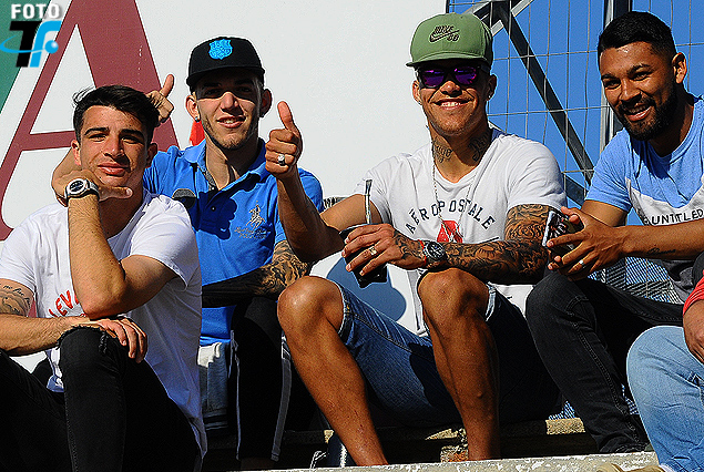 Maicol Cabrera, Mauro Estol, Javier Méndez y Franco Romero, dedo para arriba, mate y buen ánimo.
