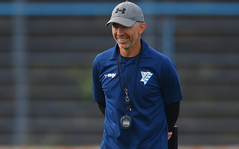 Nelson Abeijón, nuevo entrenador de Cerro, en su primer día de entrenamiento al frente del plantel albiceleste.