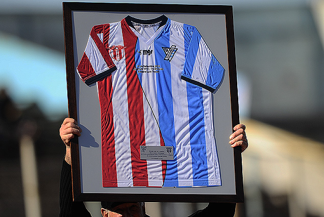 “Fuerza Canario”: Otra pancarta con que ingresó Villa Teresa al campo, ésta portada por sus futbolistas, decía “Fuerza Canario, también Villa Teresa está contigo”, en apoyo al “Canario” Ángel Suárez, que está luchando contra una cruel enfermedad.