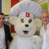 Carlos "Tío" Sánchez y Daniel Enríquez junto al Oso de Bimbo.