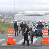 Acaté la orden del “Gallego”, comenzaron a dictarnos diversas formas de discado y… ¡Nada! El mismo mensaje de la operadora. En esa instancia se generó un debate entre los policías. Uno preguntaba si mi celular tenía “romming” internacional. Le dije que sí. Tiró otra solución y… ¡Nada! Al final el “Gallego” en una especie de traba lengua en “portuñol” convenció al policía más grandote que se tomó el tema en serio y comenzó el intento de hablar con su celular, con el chofer de la camioneta para que dijera por dónde venía y cuánto demoraba. Discó. El teléfono sonó, sonó y… ¡nada! Un compañero le preguntó si “ligaba” a un celular. Le respondió que no, que era a la oficina y que estaba cerrado. Aquello era una confusión total, lo que ambientó la toma de una decisión por parte de nosotros tres: “Vamos a tomar un taxi”. En ese instante el policía que continuaba discando sin éxito, consiguió hablar con alguien que lo atendió en el número. Habló. Cortó y nos dijo que él había guardado la camioneta en el garaje, que no podía venir a recogernos. Okey. Le agradecimos a los policías y salimos caminando hacia abajo. Allá a la distancia, a unos 300 metros, parados frente a una de las puertas del estadio de Itaquera, se divisaban cinco o seis taxis, pintados de blanco, en fila. Habíamos caminado unos 30 metros cuando retorna corriendo el policía más grande, muy afectuoso, sonriendo. Pensé que era portador de la buena noticia que estábamos esperando: que el chofer de la camioneta que se contrató y a cuyo chofer le habían pagado, nos venía a buscar. Nos equivocamos…