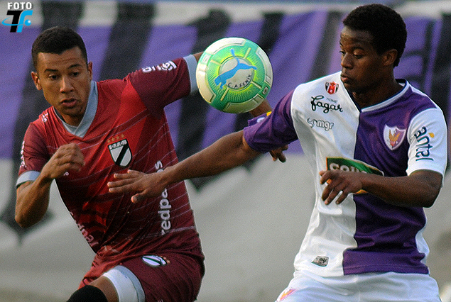 Pablo Siles, de Danubio y Breno De Souza, de Fénix, por el control de la pelota en el Parque Capurro.