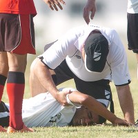 Jorge González, en el momento que cae lesionado