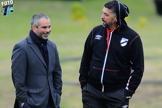 Oscar Curutchet, presidente de Danubio, y Leo Ramos en el Complejo, el técnico de vuelta a casa.
