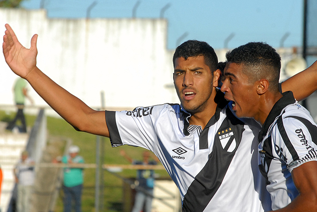 Adrián Balboa festeja su gol con Jorge Graví.