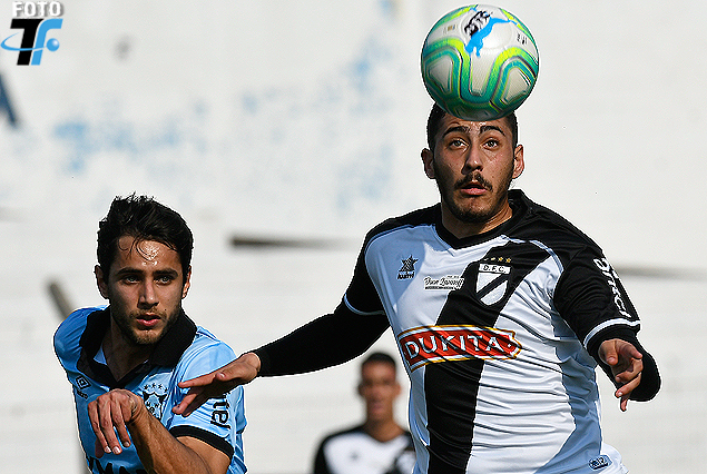 Sebastián Gorga, zaguero de Wanderers, en la marca a Agustín Navarro, delantero de Danubio,