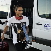 Luego llegaron en un grupo que se juntó en el Aeropuerto Havalimani aunque provenían de diferentes vuelos en horas más o menos cercanas. Llegaron al hotel en una camioneta tipo ven, Alvaro Pereira, Walter Gargano, Martín Cáceres, Abel Hernández, Diego Pérez.