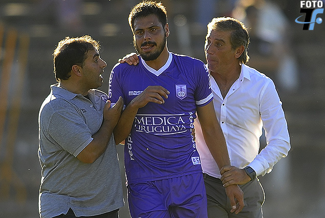 Guillermo De Los Santos fue expulsado en el primer tiempo y salió de la cancha con bronca por su ausencia en el próximo partido frente a Nacional. Mathías Cardacio salió sentido: contractura en el gemelo.