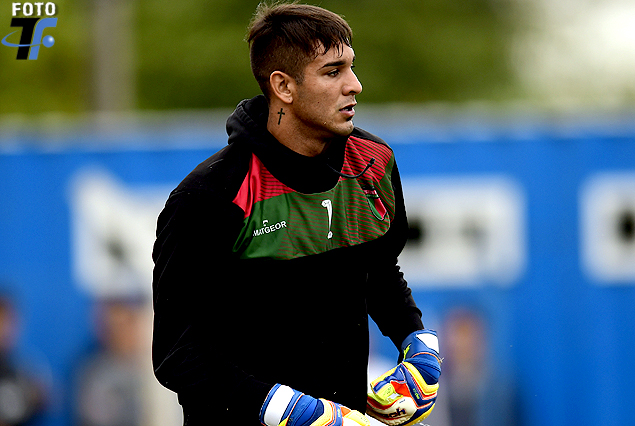 Gonzalo Falcón en el arco de Boston River en la Copa Sudamericana.