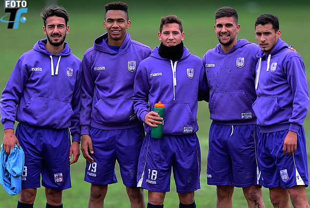 Los cinco juveniles de los violetas en el Complejo Eduardo Arsuaga: (“Pichincha”): Facundo Batista, Gastón Alvarez, Luciano Boggio, Lucas Rodríguez y Juan Manuel Figueroa entrenaron el martes en primera.