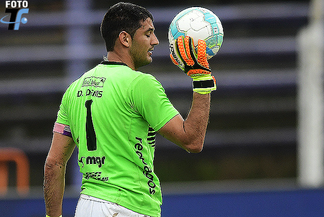 Darío Denis con la pelota en su mano derecha. Notable actuación.