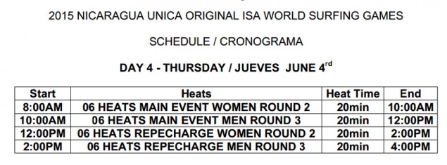 En el cuarto día, el evento continuará con las rondas del evento principal masculinas y femeninas. Para seguir en vivo las series de los competidores uruguayos: