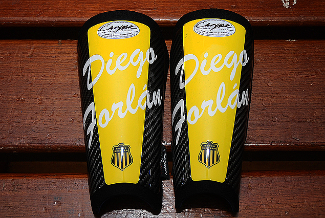 Diego Forlán ya tiene todo pronto en el vestuario. Un juego de canilleras especiales para la ocasión, amarillas y negras con su nombre y el escudo de Peñarol Con todos estos significados debajo de sus medias, el goleador saldrá a la cancha para intentar perforar las redes adversarias. Canillera de goles.