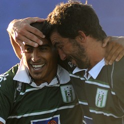 Diego Zabala y Juan Pablo Rodríguez en el festejo de gol.