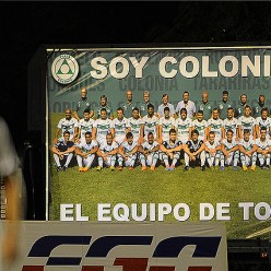 Camión… Un camión fue estacionado en el talud, luciendo un cartel luminoso de publicidad con una infografía gigantesca del plantel “patasblancas” y la leyenda, “Soy Colonia; El equipo de todos”.