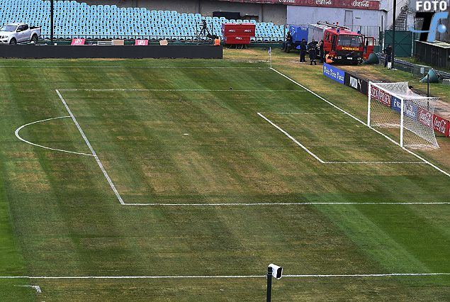 El césped del área del arco de la Amsterdam hoy presenta un mayor tono verde. La cancha soportó las intensas lluvias de las últimas horas y desde zona de palcos se puede apreciar en aceptable estado. Los funcionarios de CAFO volvieron a remarcar las distintas líneas demarcatorias y colgaron las redes en los arcos.