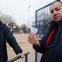 Los funcionarios en el acceso al estadio,muestran las dos entradas vendidas hasta veinticinco minutos antes de empezado el partido.