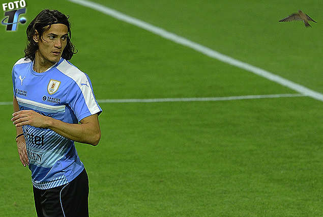 Edinson Cavani y el vuelo del pájaro a su lado en el Estadio University of Phoenix.