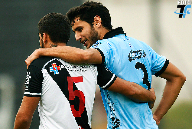 Nicolás Prieto (Danubio) y Sebastián Gorga (Wanderers) en el abrazo de los ex compañeros.