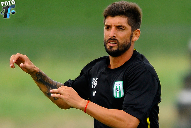 Pablo Caballero en el mediocampo albiverde.