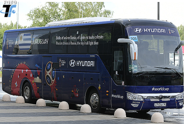 El bus 205 de la World Cup que traslada a la selección uruguaya.