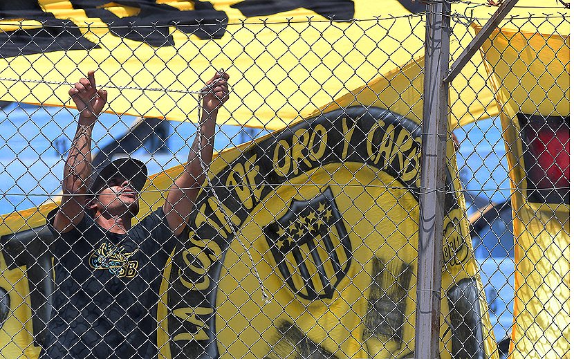 El parcial aurinegro cuelga su bandera del alambrado perimetral del talud Amsterdam.