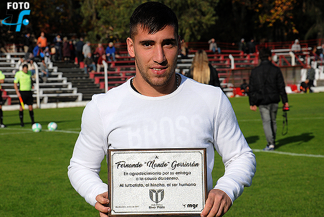 RECONOCIMIENTO: Los dirigentes de River obsequiaron una plaqueta a Fernando Gorriarán por su inminente viaje a Hungría. La transferencia se concretó y entonces realizaron la distinción al volante. “En agradecimiento por su entrega a la causa darsenera. Al futbolista, al hincha, al ser humano”.