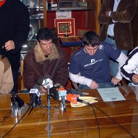 Carlos Bueno, Enrique Saravia (Pte. de la Mutual de jugadores), Cristian Rodríguez y Joe Bizera en conferencia de prensa en el año 2007.