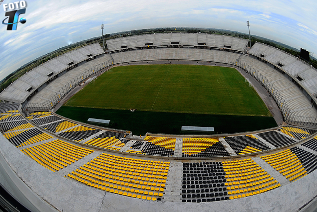 La vista imponente del Estadio "Campeón del Siglo" con las tribunas y el tablero.