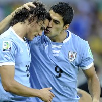 Edinso Cavani y Luis Suárez en momento de festejo con la celeste.