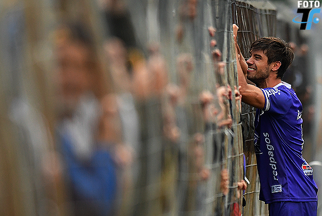 Festejo… Matías Cabrera, cara a cara con los hinchas. El volante emocionado se acercó al alambrado olímpico para celebrar junto a su familia. Figura del campeón.