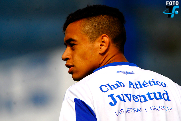 Ismael Gularte a la zaga de Juventud ante Wanderers.
