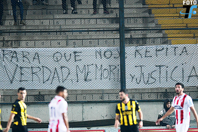 Pancarta… “Para que no se repita, Verdad, Memoria y Justicia”, la pancarta que apareció colgada en el alambrado perimetral de la Tribuna Washington Cataldi, adhiriéndose a la denominada Marcha del Silencio. Miles de personas transitaron este domingo por la avenida 18 de Julio, en reclamo de verdad y justicia sobre los detenidos desaparecidos, durante la Dictadura militar. El fútbol no estuvo ajeno…