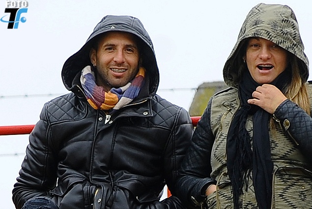 Agustìn Peña junto a su esposa en la Tribuna visitante, el hermano estuvo en el banco de Rampla Juniors.