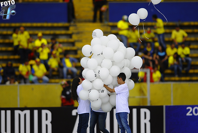 Globos blancos se prontos para ser lanzados al aire en las tribunas.