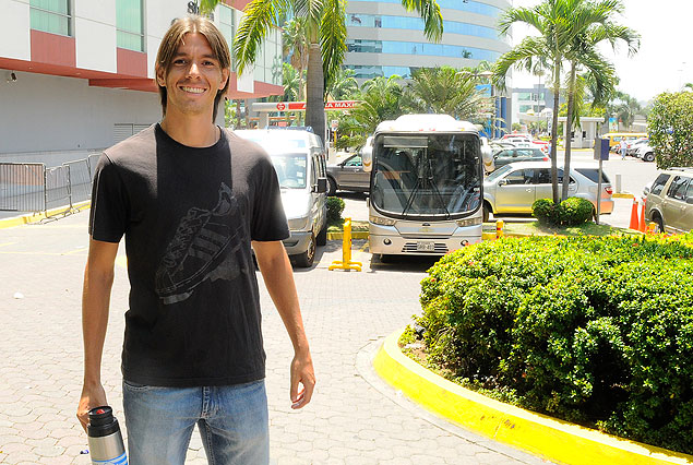 Alvaro "Pájaro" Alonso, captado este mediodía de miércoles en la puerta del Hotel Sheraton donde se aloja Uruguay en Guayaquil. Contó sus experiencia en el fútbol de la Segunda de Ecuador